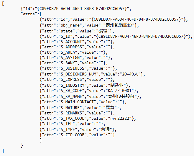 描述:{“id”:”xxx”,”attrs”:[{“attr”:”attr1″,”value”:”xxx1″},{“attr”:”attr2″,”value”:”xxx2″}, …]}