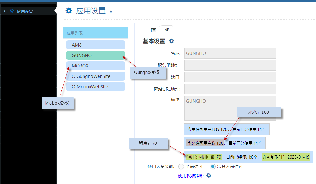 Gungho及Mobox授權 :永久許可+租用許可組成