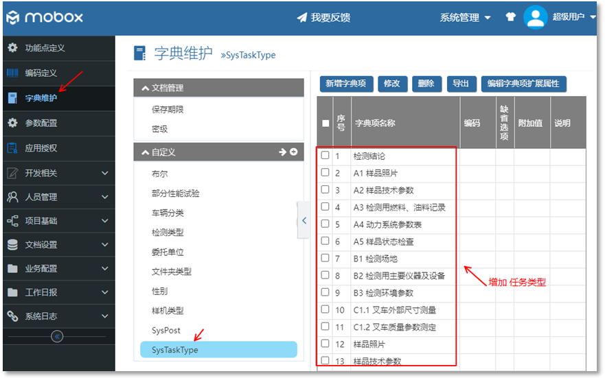- 字典里面增加:SysTaskType,里面定義任務類型的名稱
