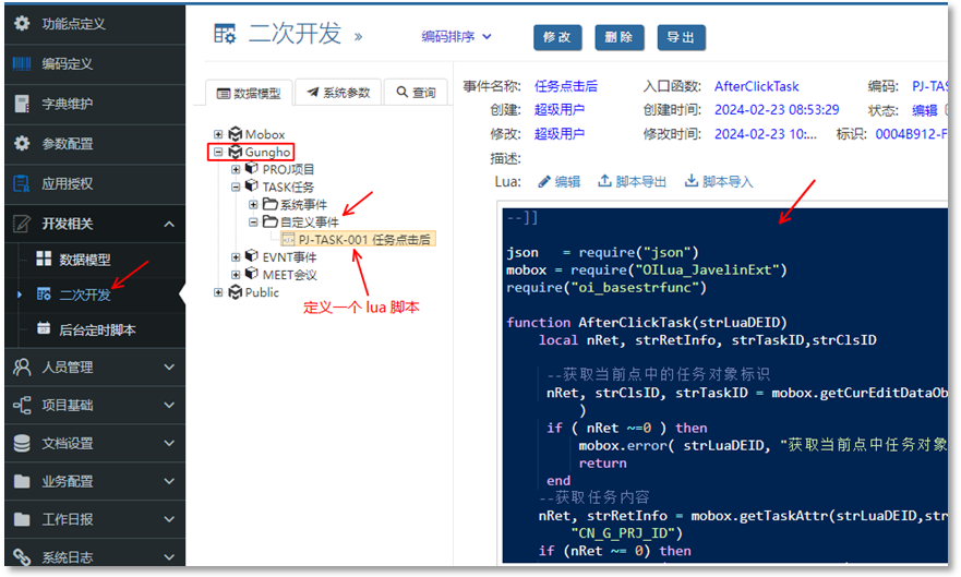 - 進入二次開發 – gungho領域 – TASK任務 – 自定義事件