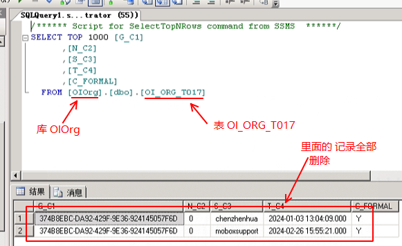 通過 SQL的管理器,打開 數(shù)據(jù)庫OIOrg 的 OI_ORG_T017表