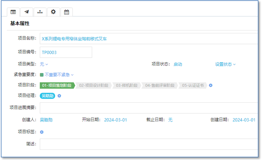 項(xiàng)目階段(可設(shè)置當(dāng)前階段)、項(xiàng)目狀態(tài)