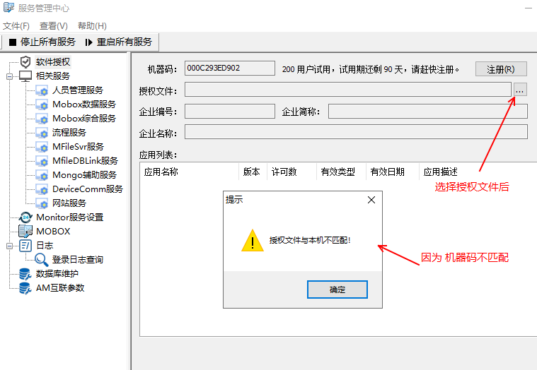 2)授權(quán)文件的機(jī)器碼與當(dāng)前服務(wù)器的機(jī)器碼不一致(注冊(cè)的時(shí)候會(huì)出現(xiàn))