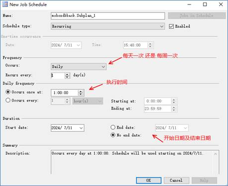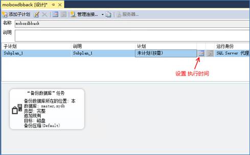 5、單擊“子計(jì)劃時(shí)間表”(日歷圖標(biāo))以設(shè)置SQLserver自動(dòng)備份頻率