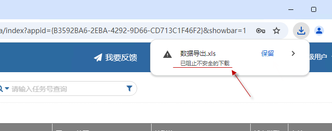 mobox3數據導出excel下載異常(google瀏覽器) 2024/08/31 分類:產品中心 產品手冊 問題中心 654 在google瀏覽器上mobox3導出數據下載excel的時候異常。 出現錯誤 解決方法 保留后,就能正常下載了(這個google新瀏覽器才會出現) 上一篇: 制造業低代碼平臺mobox3升級過程 下一篇: 事件日志查看的相關問題