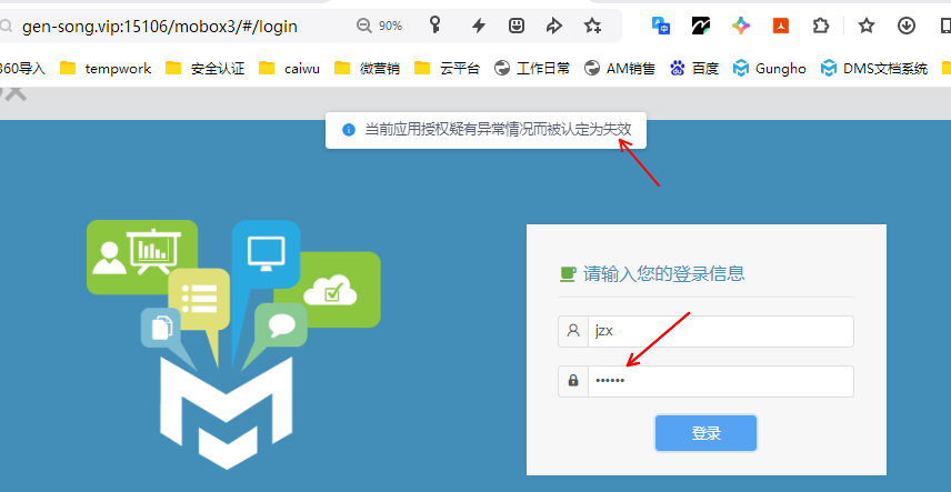 當前應用授權疑有異常情況而被認定為失效(mobox3授權問題) 2024/10/23 分類:產品中心 問題中心 540 但我們登錄mobox3的時候出現 這個可能有2種可能 1、mobox的授權數不夠了 解決方法,找供應商重新增加授權 2、授權數據異常 這種往往是數據表數據是有異常的,不是通過正常接口方式加的,很有可能是?手工?改過數據表的,在數據初始化時,檢測到數據異常的 比如,授權是時效性授權300用戶,而數據表中卻登記了10個永久授權。這個情況下也會出現上圖提示 標簽:問題 上一篇: mongodb不能正常啟動的解決方案 下一篇: MBC文件上傳到100%后卡住(最近幾個問題)
